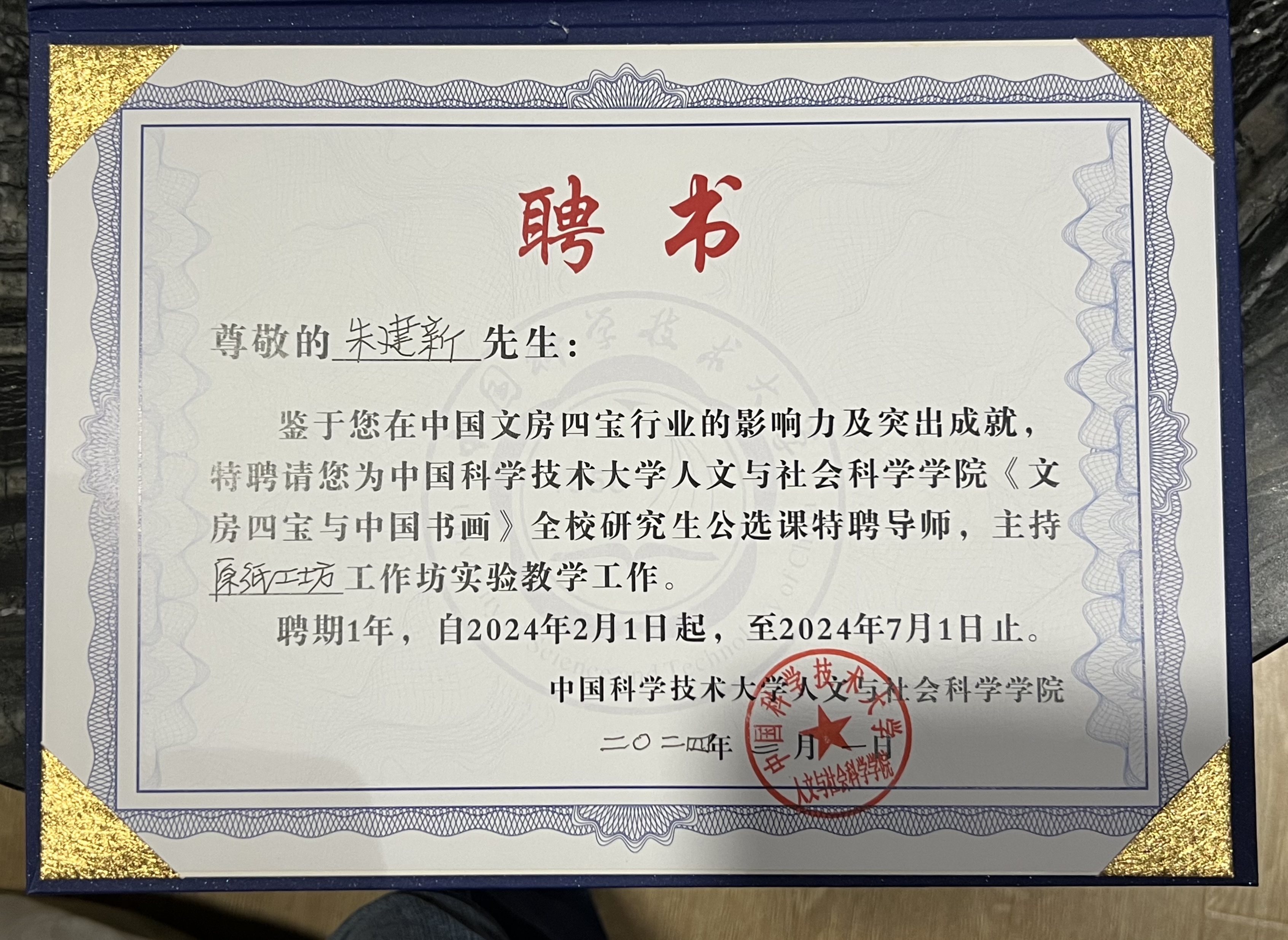 2020年公司實(shí)現(xiàn)了文化類規(guī)上企業(yè),迄今已申請(qǐng)了15項(xiàng)發(fā)明專利,19項(xiàng)實(shí)用新型專利,其中已授權(quán)發(fā)明專利3項(xiàng),實(shí)用新型專利11項(xiàng);2022年,公司為北京第24屆冬季奧運(yùn)會(huì)提供楮皮紙和紀(jì)念品,非遺傳承人朱建新被授予北京2022年冬季奧會(huì)參與證書,以感謝第24屆冬奧會(huì)取得圓滿成功做出的貢獻(xiàn)。2022年-2024年,朱建新被中國(guó)科技大學(xué)聘為《中國(guó)筆墨紙硯》全校公選課特聘導(dǎo)師;2023年,朱建新獲省級(jí)非遺傳承人稱號(hào)、“黃山工匠”稱號(hào)。