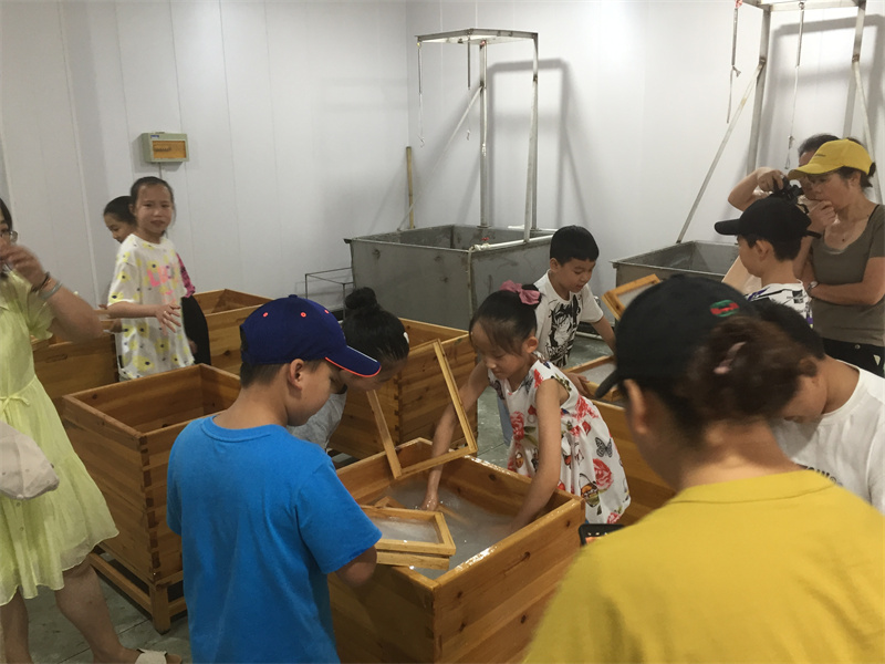 2021年8月28日,暑假的結(jié)尾,再來一波研學(xué)體驗,小朋友們學(xué)習(xí)如何撈紙,在實踐中體驗紙的生產(chǎn)不易,學(xué)會珍惜愛護(hù)用紙