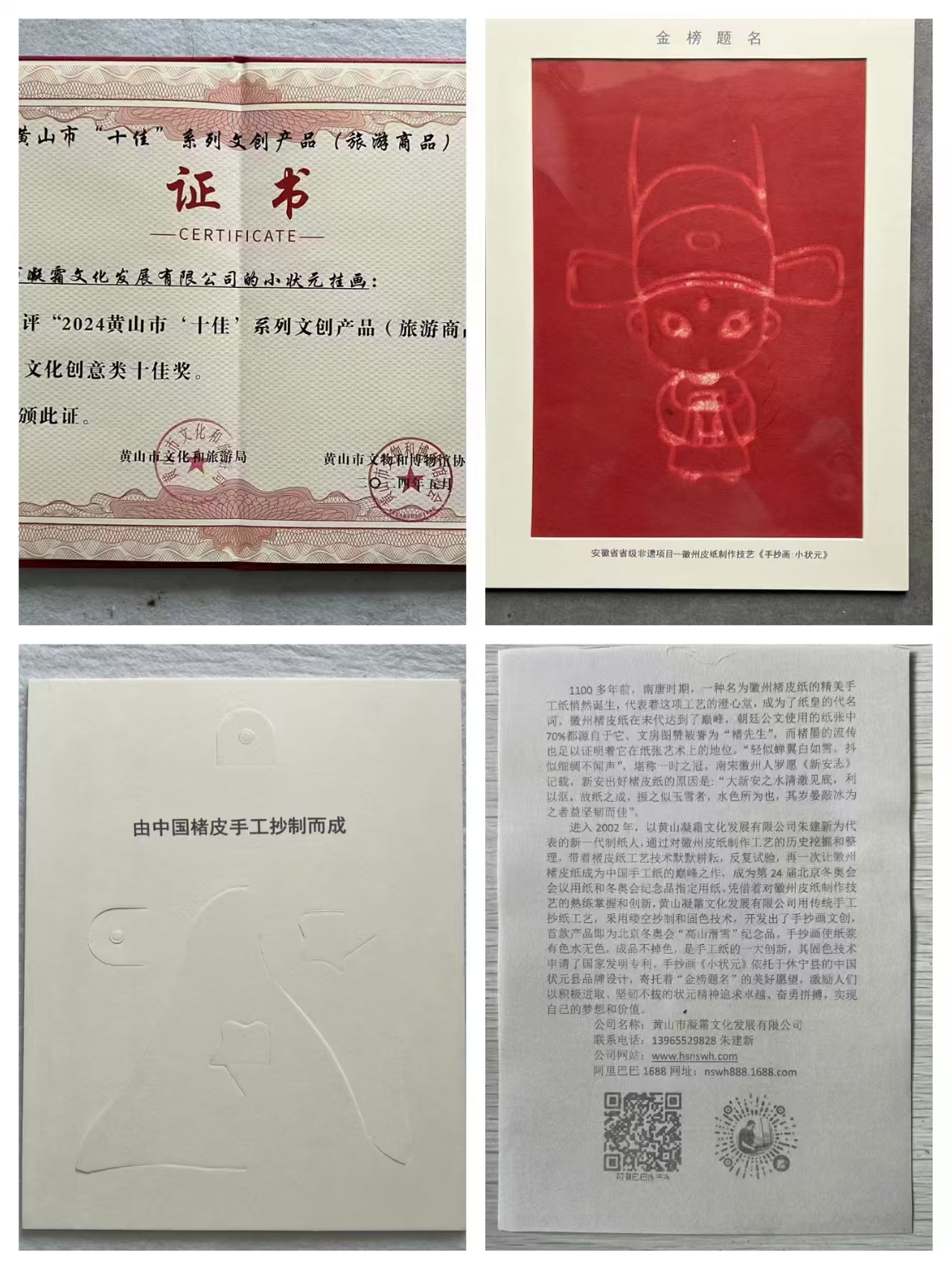 凝霜文化文創(chuàng)《小狀元掛畫(huà)》獲2024年黃山市“十佳”系列文創(chuàng)產(chǎn)品(旅游商品)稱(chēng)號(hào)